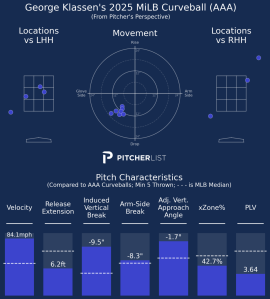 Encouragingly, Klassen has made significant strides in command. With that foundation in place, even incremental refinements to pitch design and sequencing could meaningfully elevate his results as he closes in on the majors.