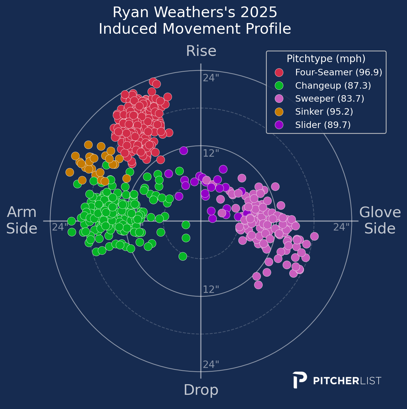 This is a formula we’ve seen repeated by other Yankee lefties, such as Carlos Rodón, who added a wicked one-seam sinker in 2025 as a bridge to his now-lethal changeup. We could even see Weathers switch to this type of sinker, which would add a couple more inches of depth to an already solid two-seam shape.