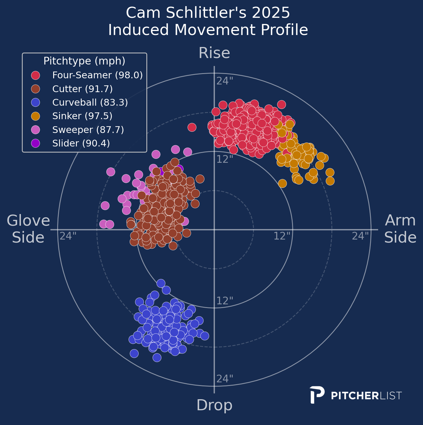 Schlittler’s induced movement profile suggests a lack of arm-side offerings with depth, outside of a steadily improving two-seam. According to David Laurila of Fangraphs, Schlittler had worked on a splitter in spring training, but ditched it after struggling with execution.