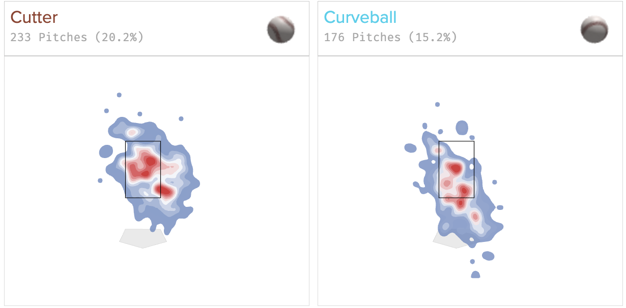 Command of these secondaries, however, has been a challenge. Too many mistakes over the plate have prevented his cutter and curveball from consistently generating whiffs, while their batted ball results have taken a similar hit.