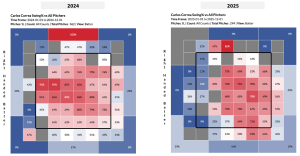 The table above depicts Correa’s Process+ metrics from the 2024 and 2025 seasons. Process+ evaluates how well a hitter executes the aspects of hitting they have the most control over (swing decisions, contact ability, and batted ball quality), relative to the quality of pitches faced. As shown by the table above, Correa has experienced a notable decline in his swing decision ability, with his Decision+ grade decreasing from 98 to 89, and his power ability, with his Power+ grade decreasing from 106 to 94, while his contact ability has remained relatively constant.