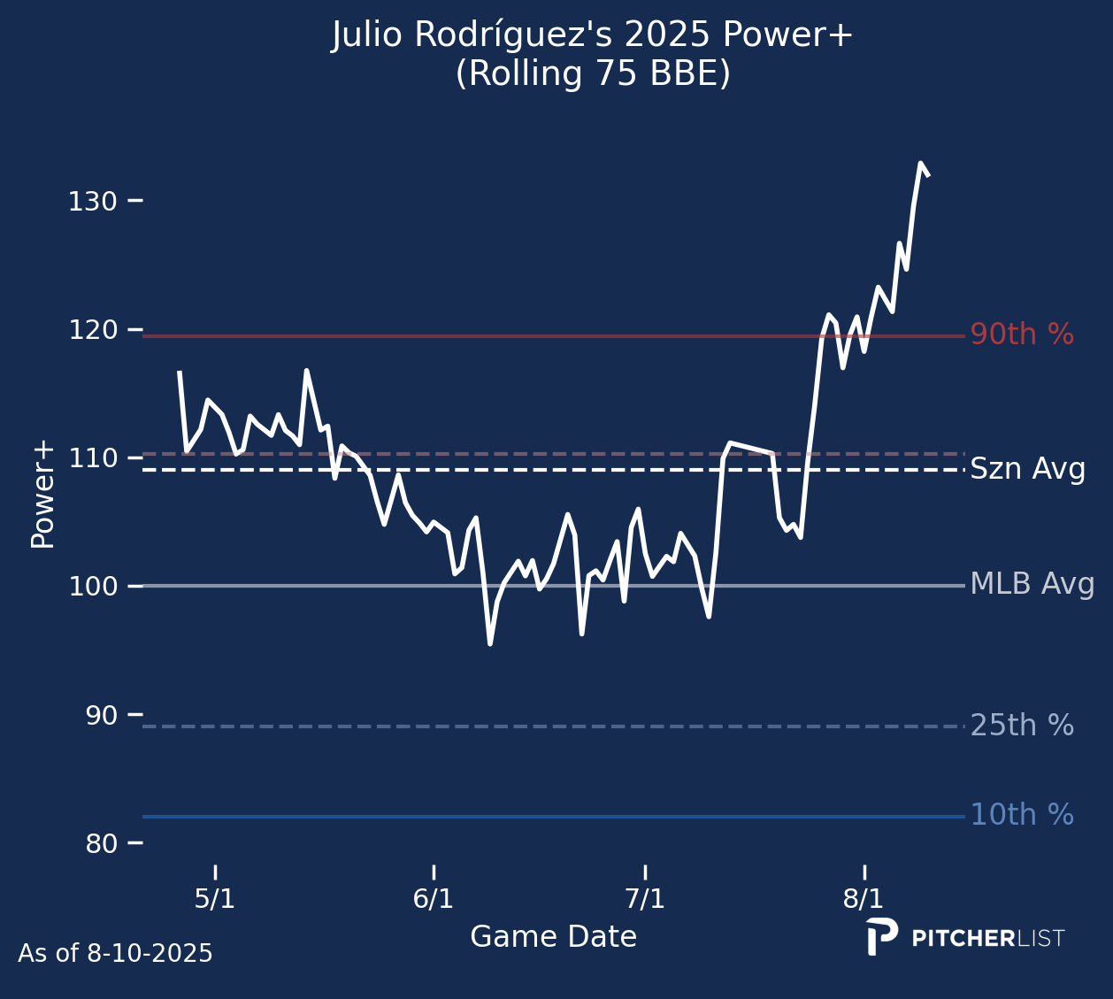 The Mets still lost, but their shortstop’s 22nd home run at least spared them from being shut out by Bryce Elder through seven innings. As you may have noticed, Lindor’s .744 OPS pales a bit compared to his career mark of .813. Sure enough, his batted ball metrics aren’t nearly the same; his Power+ has plummeted from 119 to just about average at 102.