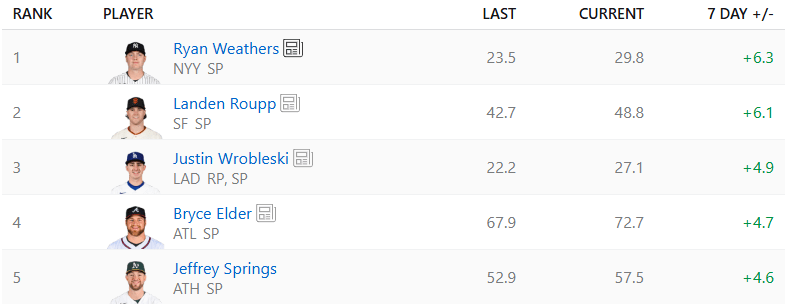 I talked about Ryan Weathers last week. He’s an intriguing add if he’s still available in your league, especially with that strikeout rate increase up to 31% and a solid 3.23 FIP to back up his nifty work to start the year.