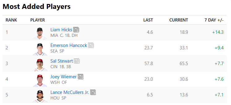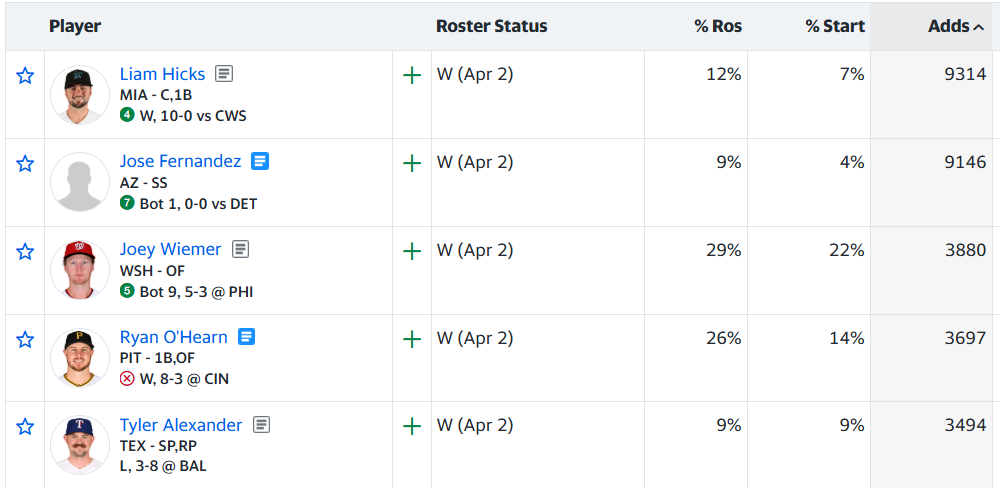Welcome to the Waiver Wire Picks, our daily fantasy baseball article that looks at the best players you should be adding to your rosters. We’ll look at the players that are likely to be available in most leagues, as well as some deep league waiver wire options. We’ll also look at the most-added players in fantasy baseball across the major sites and tell you which players to add and which to leave on the wire.