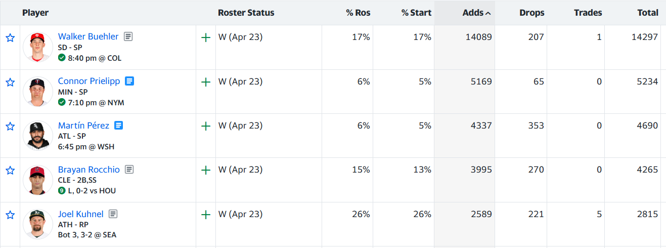 E-Rod isn’t exciting, but he’s an alright streamer when he’s clicking. A date with the White Sox yesterday made him a perfectly cromulent addition.