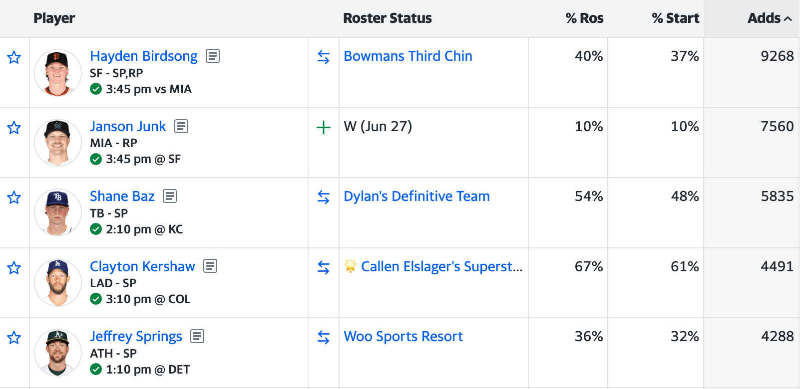 It was a big day for streaming pitchers on Thursday, with each of the five most-added players taking the bump for their squad.