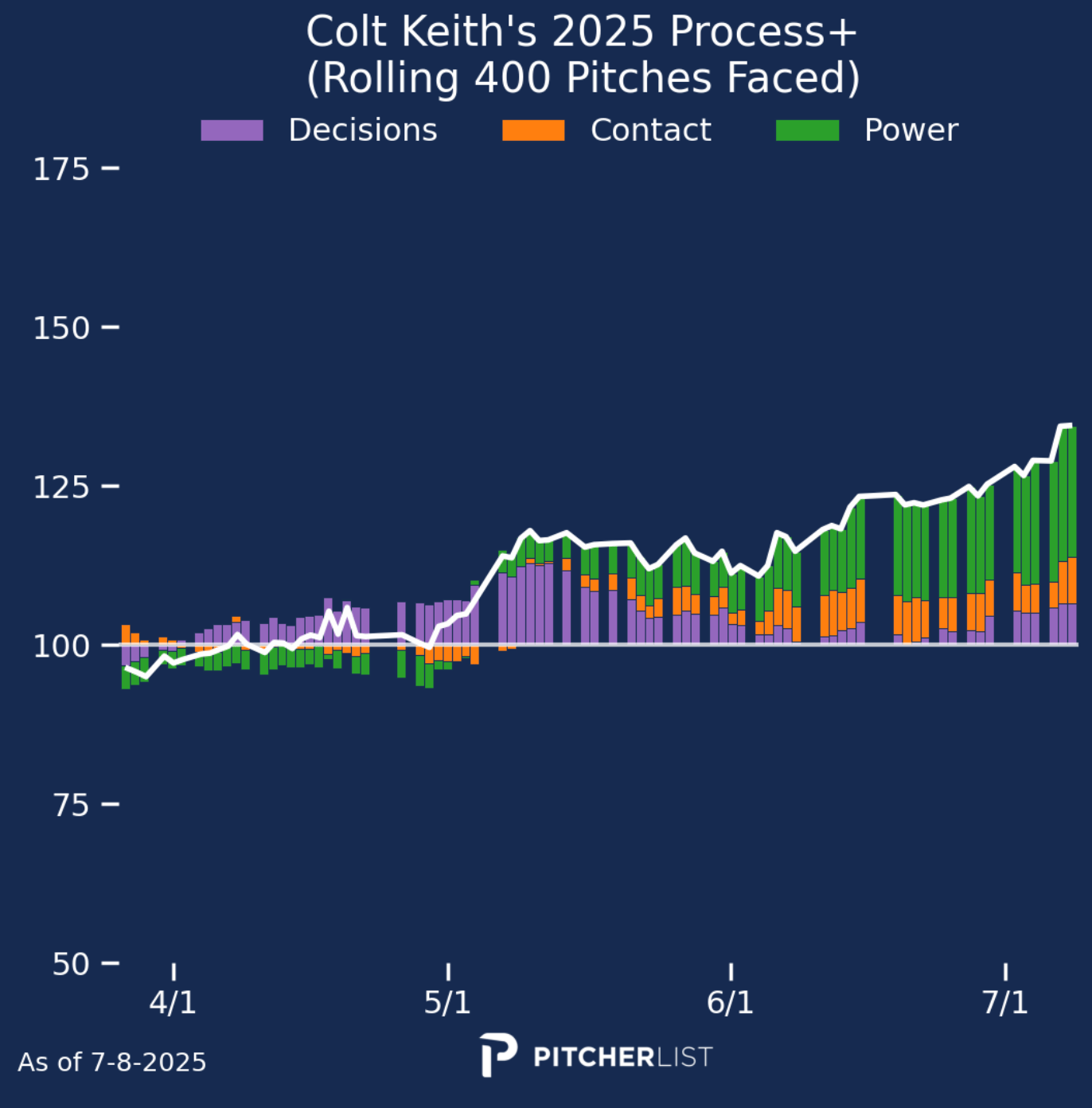 Keith has had a really solid year and has been even better of late. Since the start of June, he is hitting .322/.388/.556 with a 14.7% barrel rate and 53.3% hard-hit rate. His .419 xwOBA ranks top 10 among all hitters in that span (min. 100 PAs).