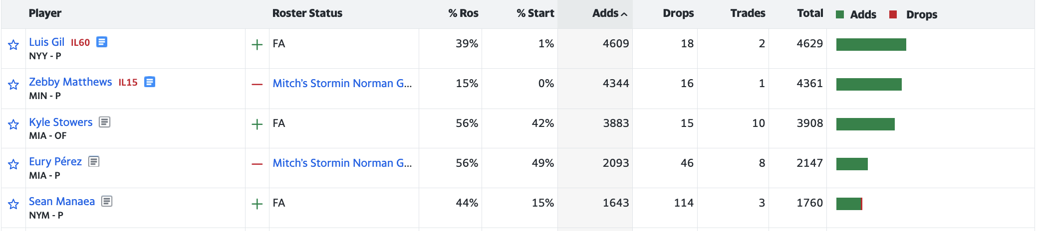 Yahoo! and ESPN Most Added Players