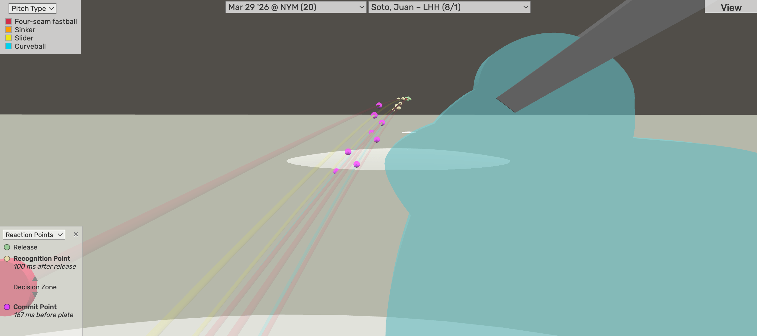 With the help of Baseball Savant, we can see the impacts of Montgomery’s elite iVB, along with how well that final fastball tunneled with the previous slider. From Soto’s vantage point, it doesn’t look like a heater that’s ending at eye-level, and the only other pitch playing into calculus there was the breaking ball that began above the zone.