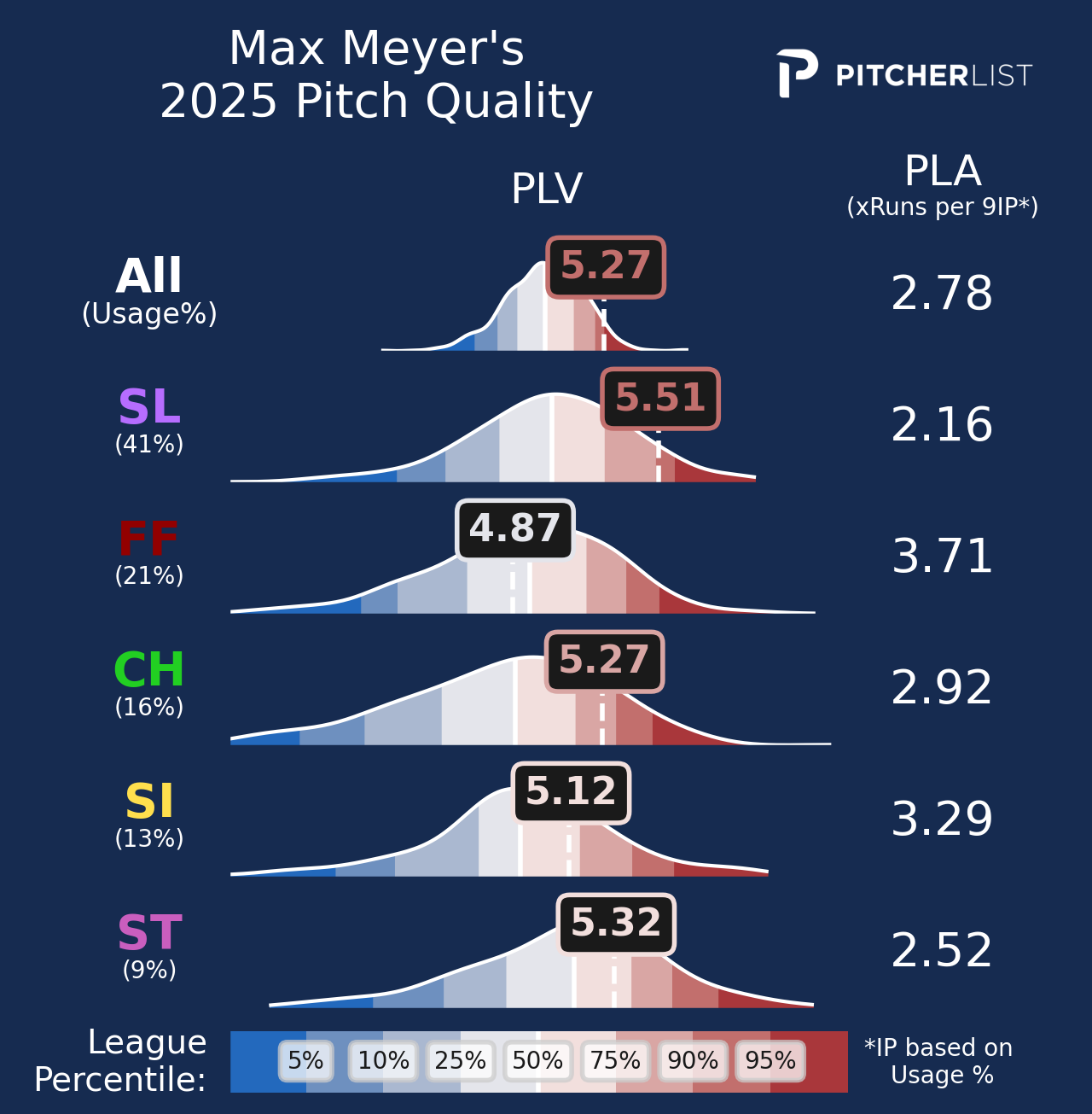 Even with an overperforming slider, Meyer’s ability to pinpoint it will ensure that it will remain a strong weapon for him, even with some expected regression. With his feel for a wide repertoire of serviceable pitches, Meyer has the tools to fit any situation and should remain a proficient pitcher as he continues collecting both ground balls and whiffs.