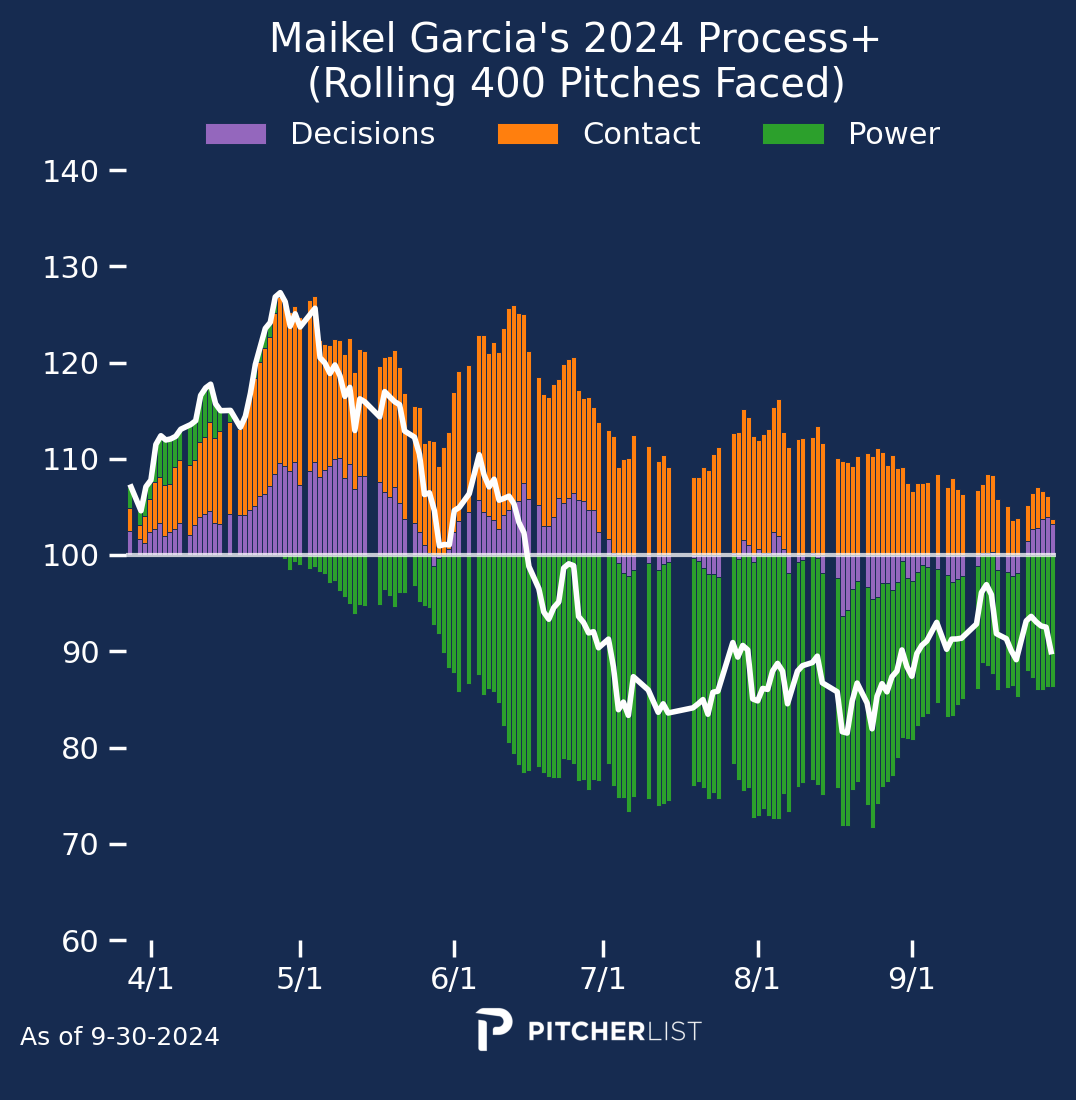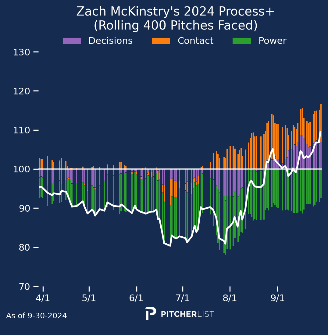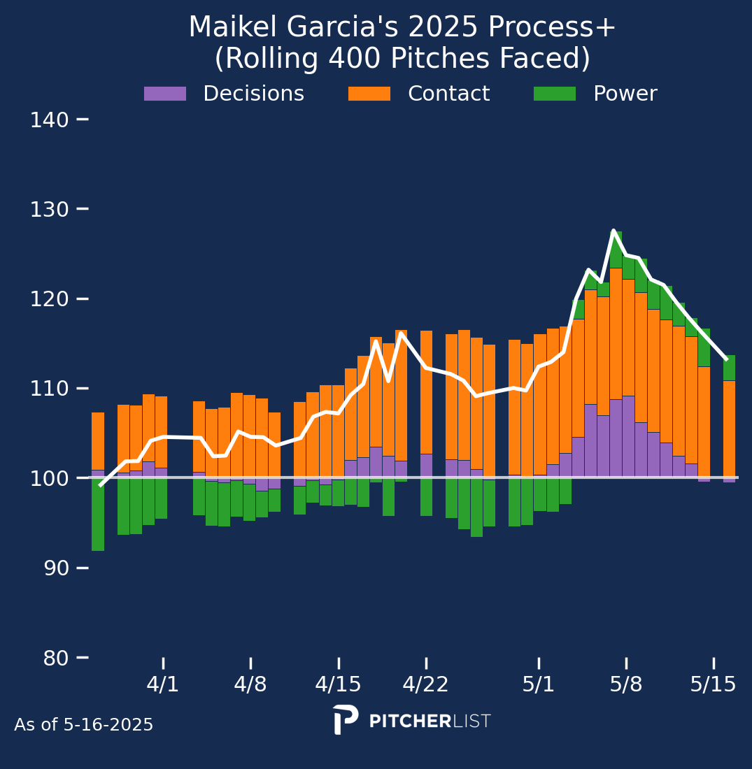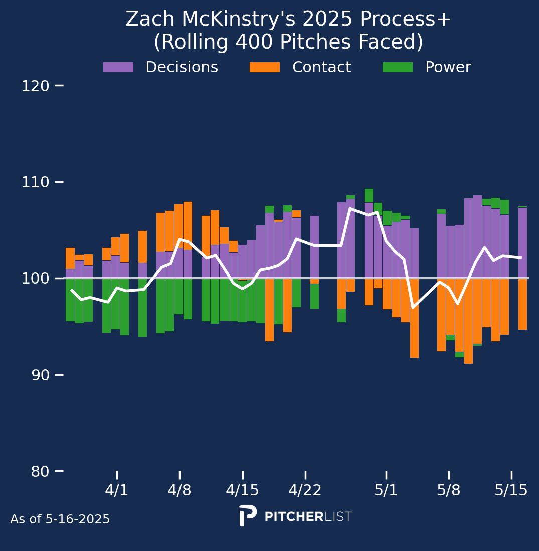 Verdict: Not legit. I’ll save us some words to write and read by saying “No”. There have been some minor changes. He seems to be swinging a bit less, taking more walks and strikeouts, and hitting more groundballs. These do not explain his drastically improved results. His power metrics continue to decline along with his already below-average Bat Speed. He is outperforming his expected stats across the board. He has a .382 BABIP in 2025 while having a .273 BABIP prior to this year. He’s also had hot streaks like this before, and they didn’t stick around. Enjoy this hot streak while you can, but as soon as he cools off, expect him to revert to the same utility guy as before. At best, he may be the league-average bat Process+ expects him to be.