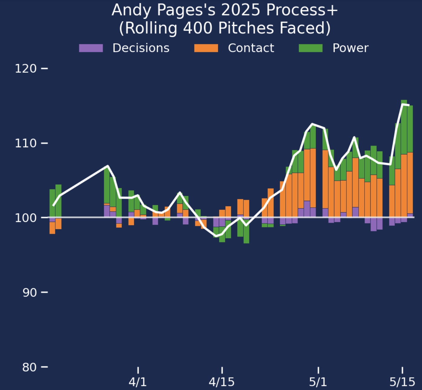 Pages is 24 years old and in his 2nd MLB season. Last year he had 443 PA, a .248/.305/.407 slash, and 100 wRC+. Certainly not bad for a rookie season. This year in 177 PA, he has a .280/.333/.494 slash and 131 wRC+.
