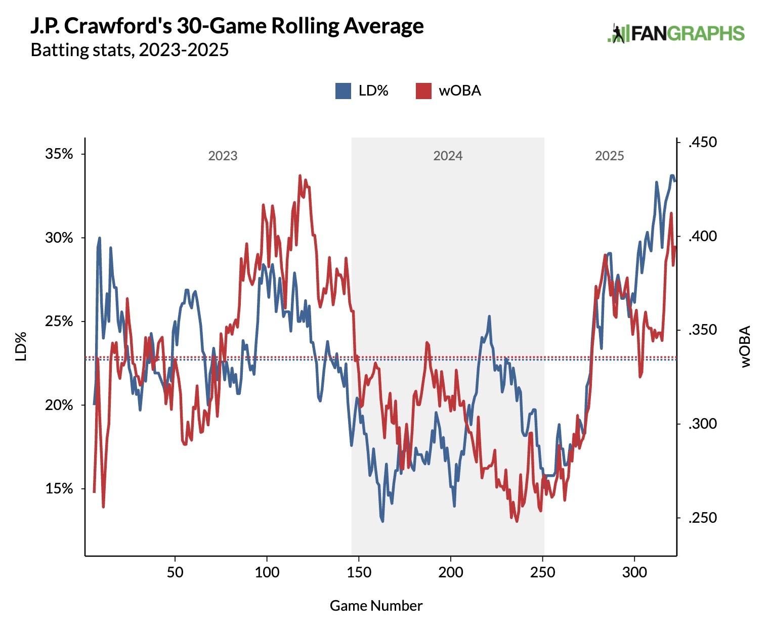 Verdict: Not Legit. Crawford continues to have above-average plate discipline, but his power is non-existent and his career-high .290 AVG is primarily supported by an abnormally high LD%. He should remain a decent source of AVG, OBP, and playing time going forward, but I doubt a repeat of his 2023 is likely.