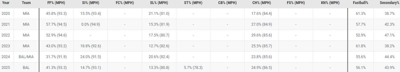 He rarely uses these two pitches versus RHB, but against LHB they have a combined 42.2% usage. He does a great job locating changeups to Lefties.