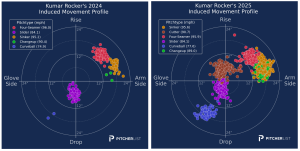 While the results haven’t quite been there so far in 2025, the underlying data suggest that Kumar Rocker has made some effective adjustments to his pitch arsenal, which should allow him to more effectively face right and left-handed hitters, potentially solidifying his role in the Texas Rangers starting rotation moving forward.