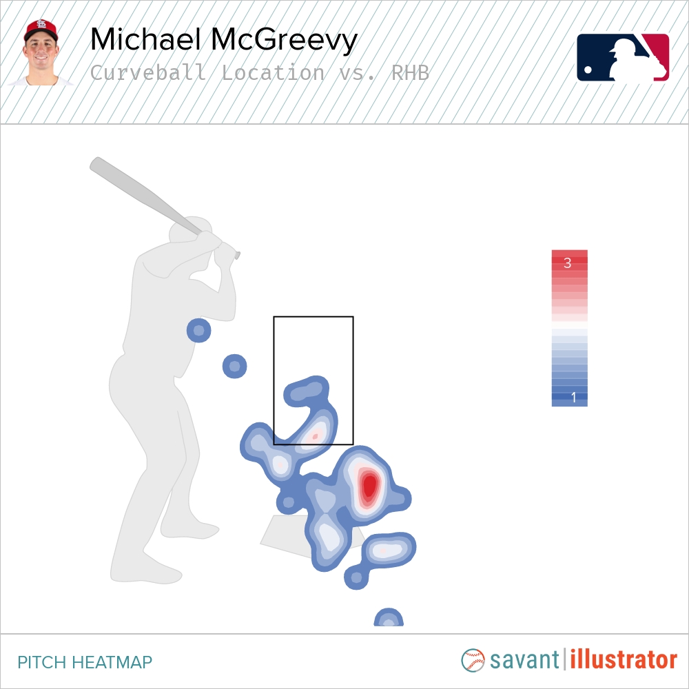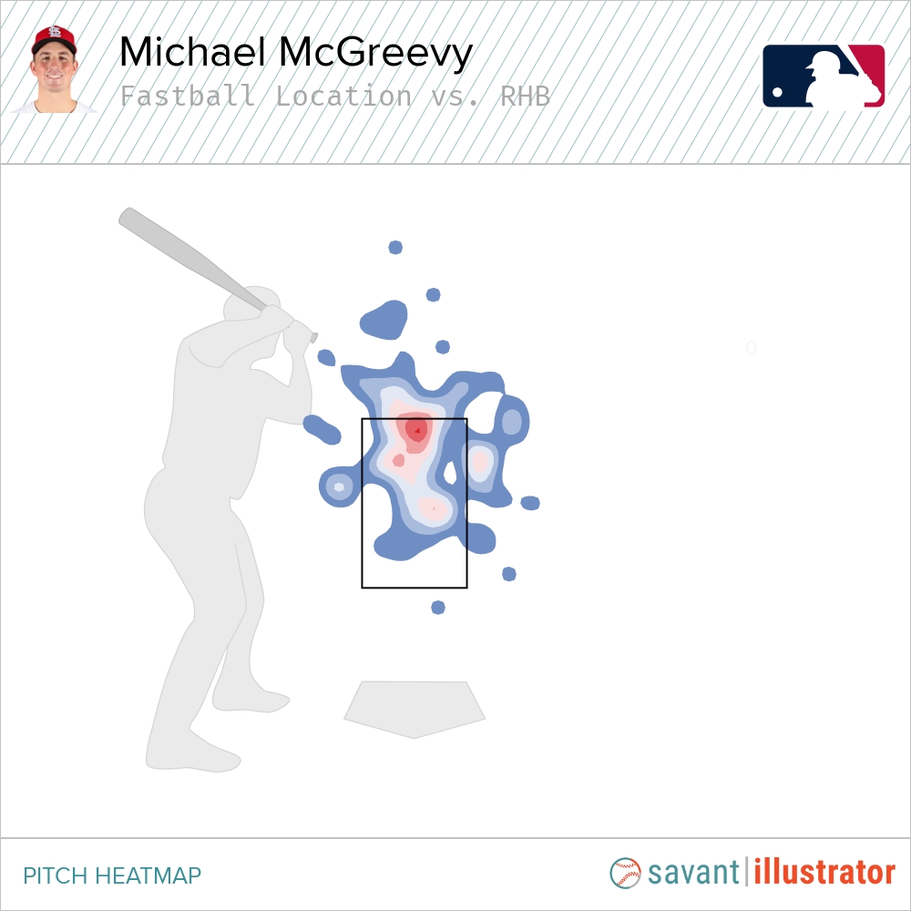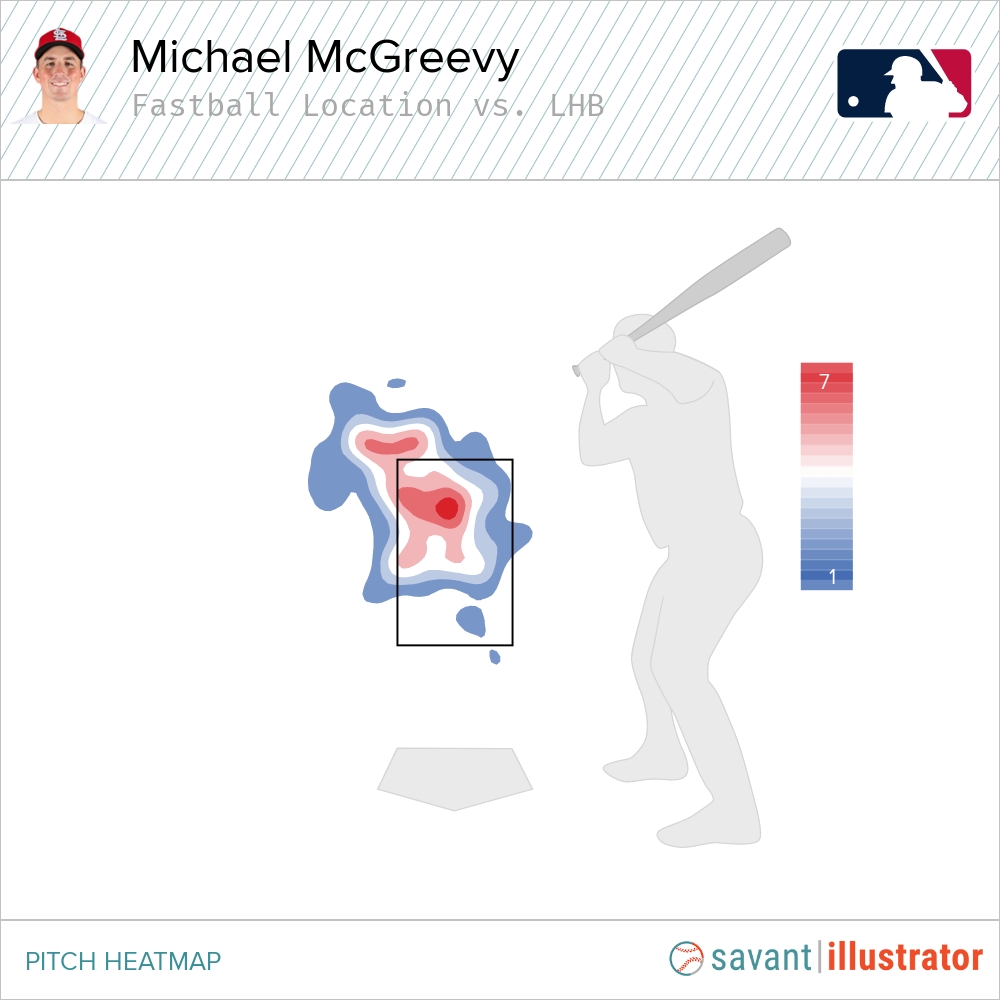 He has two non-sinker offerings to righties, the four-seam and sweeper, while occasionally sprinkling in the rest of the arsenal. Against lefties, McGreevy relies heavily on the four-seam fastball and primarily turns to the cutter, curveball, and changeup beyond it.