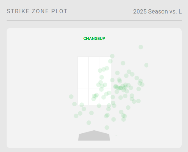 For lefties, there are some similarities with how he could improve against righties. It begins with moving away from the fastball. The 40% usage is too high for a pitch that is not particularly effective, and the cutter can operate more than just as a secondary pitch.