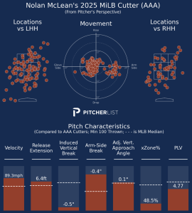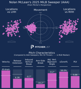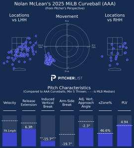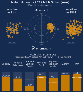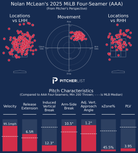 Since his promotion to the International League in May, McLean leads all qualified pitchers with a .200 opponent average and ranks second with a 3.01 ERA and 77 strikeouts. Whether it’s the eye test, the box score, or his Baseball Savant page, McLean has been one of the most fun arms to follow in the minors.