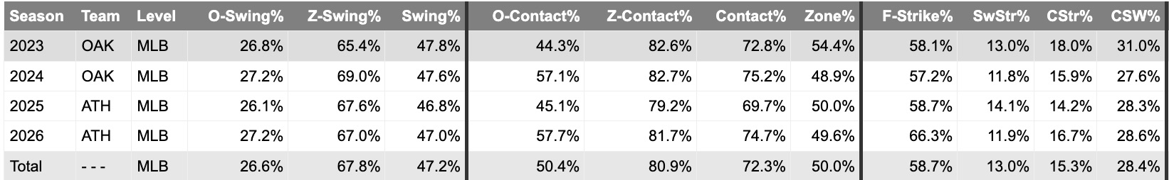 His Plate Discipline numbers have more in common with his strong 2024 season than his OK 2025. In fact, the 11.9% SwStr% would suggest his K% may come down a few points.