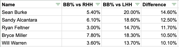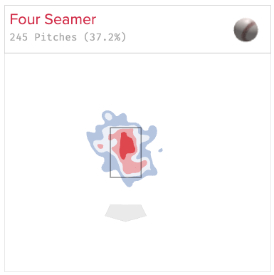 As a pitcher with a standout sweeper, you generally don’t want to throw it to the opposite hand unless you are incredibly precise with commanding it either backdoor or to the back foot. Even then, the margin for error is small. The 25-year-old simply has not executed that plan, as lefties have oblitered him on the sweeper to the tune of a 1.498 OPS and .489 xwOBA.