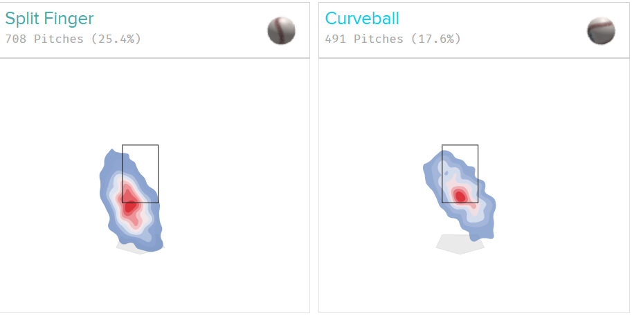 Yoshinobu Yamamoto splitter and curveball location to LHB, 2025 (Statcast)