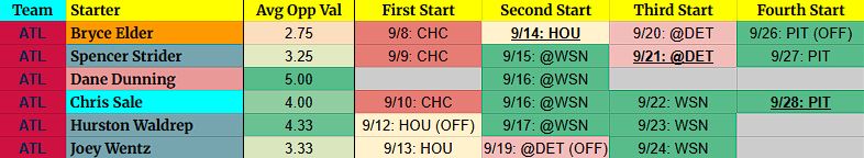 Spencer Strider – We’re not in a position to trust Strider. Maybe at the end of the year, but you can drop at the moment. Note: I’d be shocked if Atlanta gave him that final start. Why not preserve his arm?