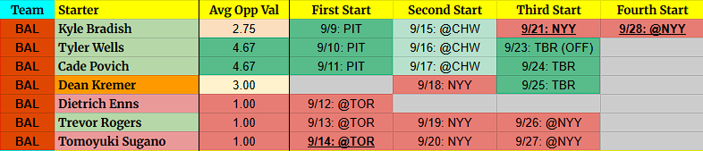 Kyle Bradish – He hasn’t been as sharp lately, but I’m gung-ho for his next first two and likely confident enough for the Yankees after.