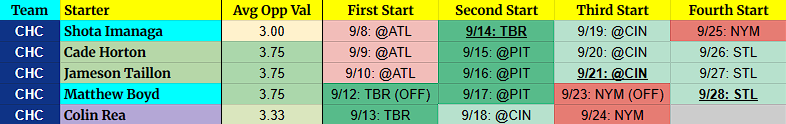These schedules are going to change. Seriously, even the daily streaming pitchers article I write often changes and that’s published just hours before game time. Use this article as a guide to understand the flow of rotations and move the respective pitchers around as needed when changes happen.