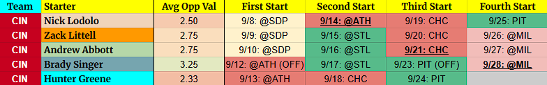 Brady Singer – Those two of those final matchups may return a pair of Wins/QS you need. I’m not holding through Sacré Verde, though.