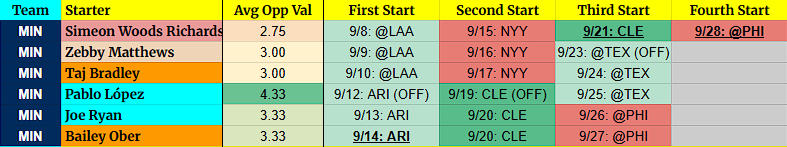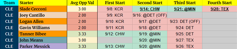 John Means – I imagine the Guardians will want to give him frames before the year ends and I wouldn’t be surprised if they squeezed three starts in here, giving Williams and Bibee rest at the end of the season. Keep him in mind for a late stream.