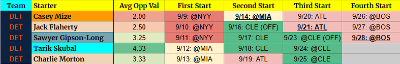 Casey Mize – Mize isn’t in a good spot at the moment, and now that he misses the start against Miami, I’m not too interested.
