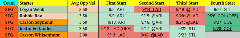 Logan Webb – He’s not at his peak and gets a horrible schedule. You can’t drop him though, right?