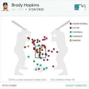 The trade-off for that improved control was more balls in play. His 98 mph fastball, in particular, was hit hard, accounting for four hard-hit balls. There appears to be enough separation in his release point compared to his other pitches that hitters may be picking it up early. Combined with a relatively average movement profile, the fastball could become a pitch opponents look to attack despite its velocity. That puts added importance on his sweeper and changeup, which help stretch hitters east-to-west and keep them off balance.