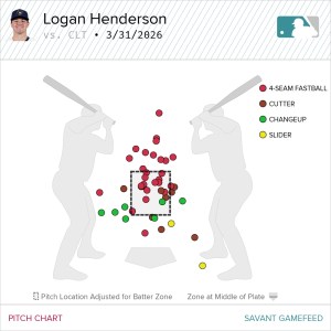 Logan Henderson made his 2026 Minor League debut in relief work for the Nashville Sounds on Wednesday. This appearance reveals the likely plan to slow-play his innings, as he only had 103 regular-season innings in 2025. The 6’0″ righty did big things in his 45 pitches, dominating Charlotte with his four-seamer for eleven whiffs, 14 whiffs overall.