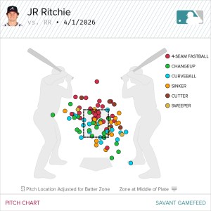 JR Ritchie profiles as a groundball-oriented starter, armed with a deep six-pitch mix in an organization that could use more rotation depth. The 23-year-old right-hander has generated over a 50% groundball rate through his first 8.2 innings as the primary starter for Triple-A Gwinnett. Groundball pitchers typically allow higher batting averages on balls in play, and there’s some concern that his stuff could be more vulnerable against Major League hitters following a promotion to Atlanta.