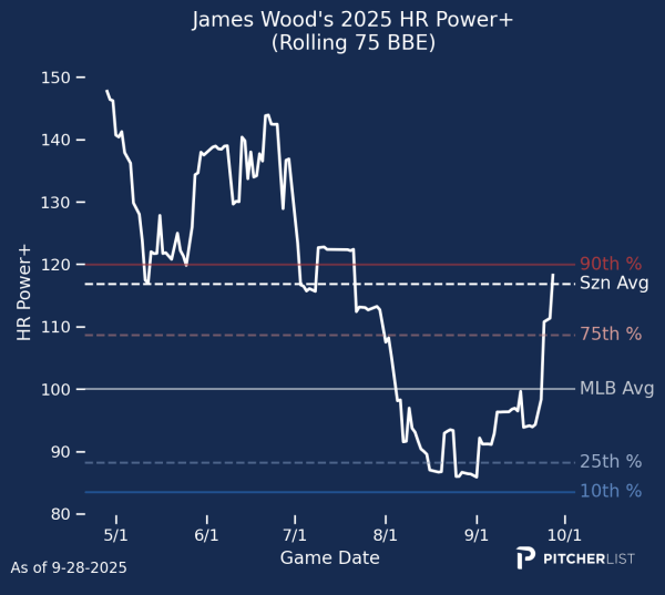 Another quick point on that second half: our metrics suggest he was still making contact, still making good decisions, and still putting some thunder on the ball despite the poor results, so the poor results may have been more of a mirage than a real change.