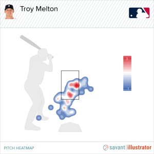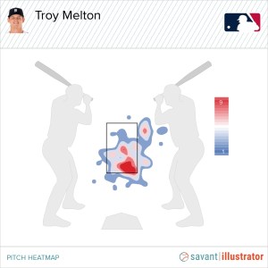 His cutter picks up the slack his slider leaves behind in these situations in terms of usage. His command of the cutter leaves something to be desired. While he is capable of zoning it regularly, it misses in hittable locations too often. Even a cutter with stuff like Melton’s will get hit in bad spots, like he has.