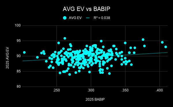 If exit velo doesn’t appear to matter, and launch angle only sorta matters, what does the best job of analyzing BABIP? Is it speed? slapping it to the opposite field? Hitting it in the sweet spot? I’ve heard all of these explanations, and I’m sure you have too. So, I loaded up every qualified hitter in 2025 and cross-referenced their BABIPs with pretty much every stat I could think of that might have something to do with BABIP.