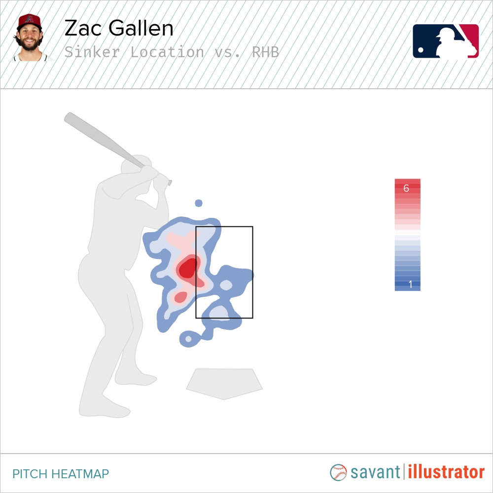 Gallen turfed the fastball in exchange for a sinker, giving him a secondary fastball to keep hitters off balance. While the new pitch doesn’t have great specs (13 inches of iVB is 92nd percentile carry, 12 inches of run is 7th percentile break), he locates it well.